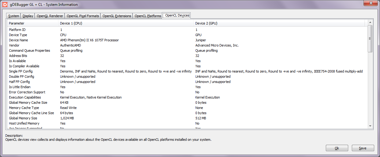 | Support | gDEBugger CL | |