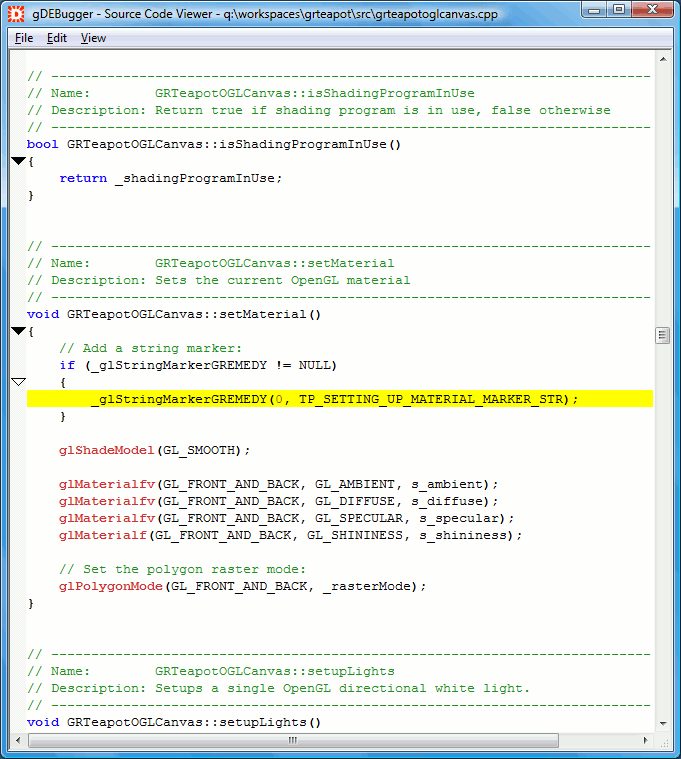 The NVIDIA GLExpert driver integration enables you to receive all GLExpert reports in gDEBugger. It also enables you to break the application run whenever a GLExpert report is triggered by the debugged application and receive the call stack and source code that caused the GLExpert report.